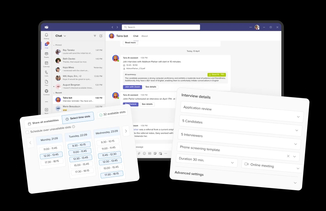 Taira integrates directly into tools like MS Teams, Slack, and your ATS, so hiring managers and recruiters can collaborate where they already work. No new tools. No added complexity. Just smarter hiring workflows.
